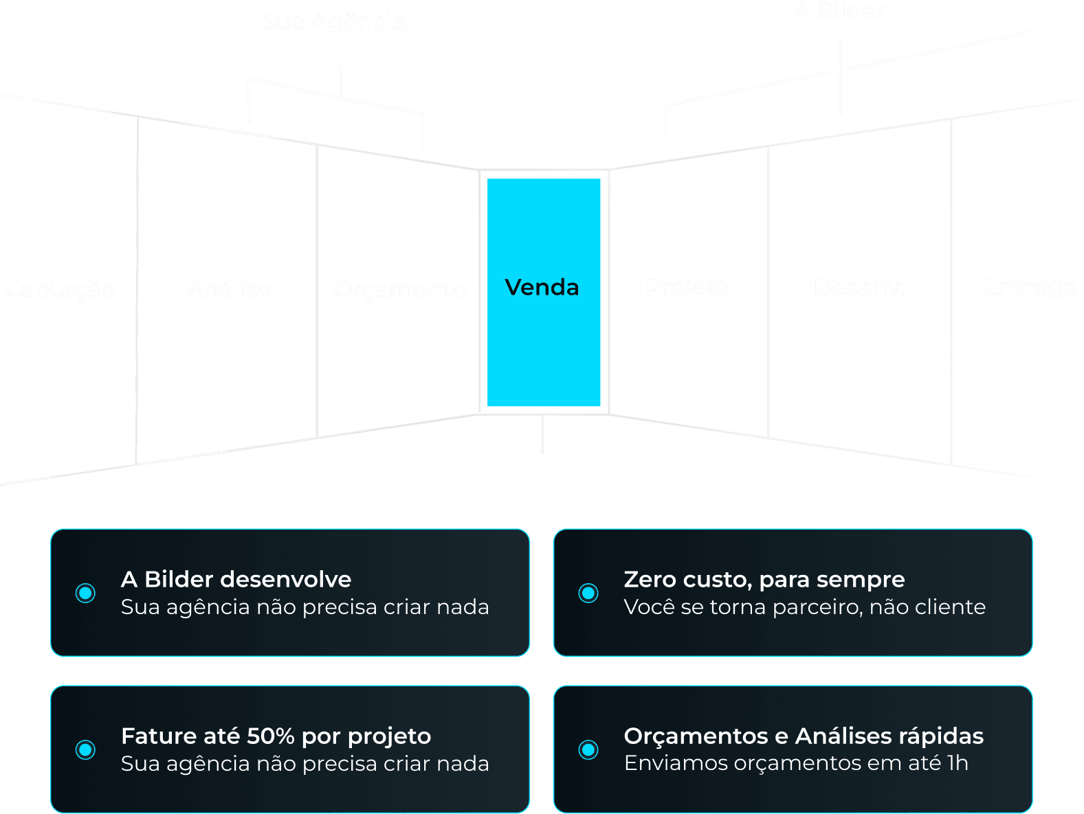 A Bilder é o braço tech estratégico que permite às agências escalar seu faturamento de e-commerce com custo fixo zero, assumindo toda a execução técnica enquanto a agência foca no cliente e nas vendas.